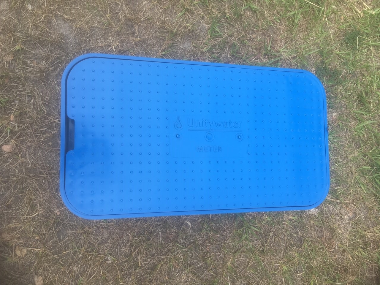 At the residence of a dialysis patient the meter box, water meter or valve box will feature a sky blue lid or marker post (shown below).