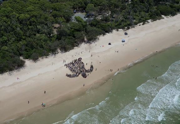 Media ReleaseA powerful image of a giant turtle, formed by more than 300 people on Woorim Beach at the weekend, has marked the start of turtle nesting season on Bribie Island.
