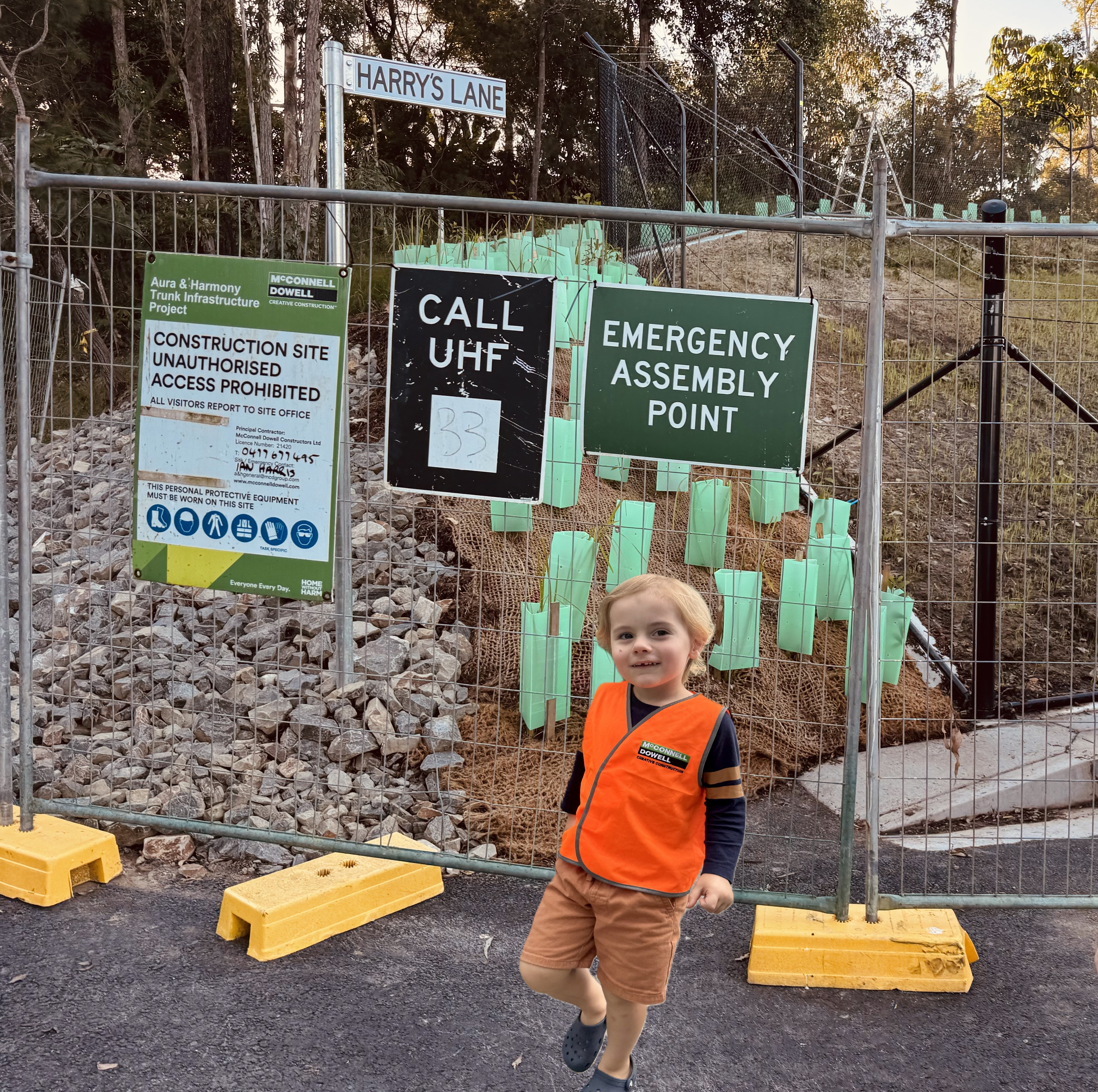 Media ReleaseMost people would shy away from a major construction project happening next door, but not Harry Butler and his parents Jeanette and Troy, who embraced the opportunity so much, the private road to a new water reservoir has been named after the four-year-old.
