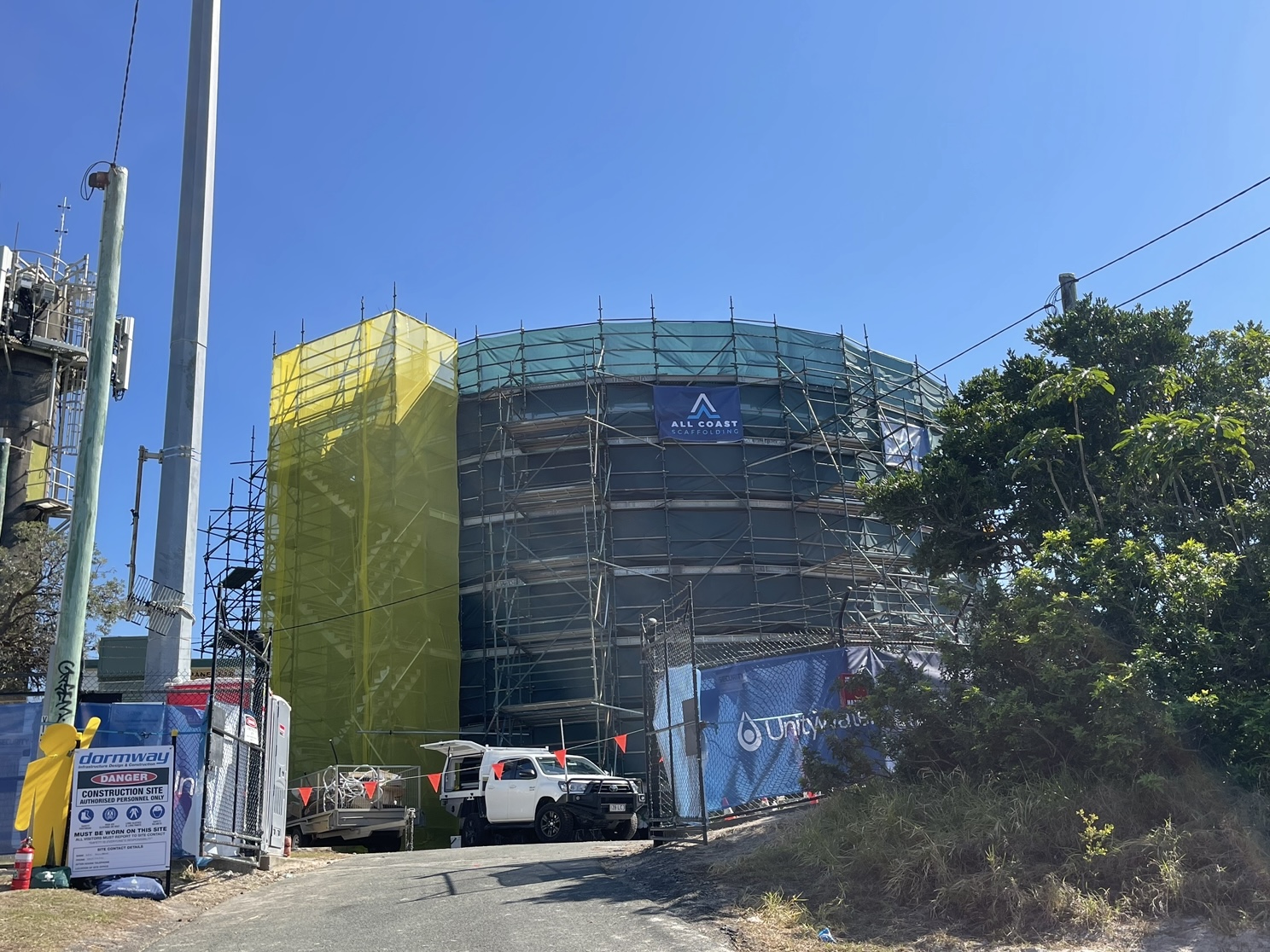 Media ReleaseThe iconic water reservoir along David Low Way at Peregian Beach is under construction to conduct routine structural maintenance, including replacing the roof, and have its artwork façade refreshed.
