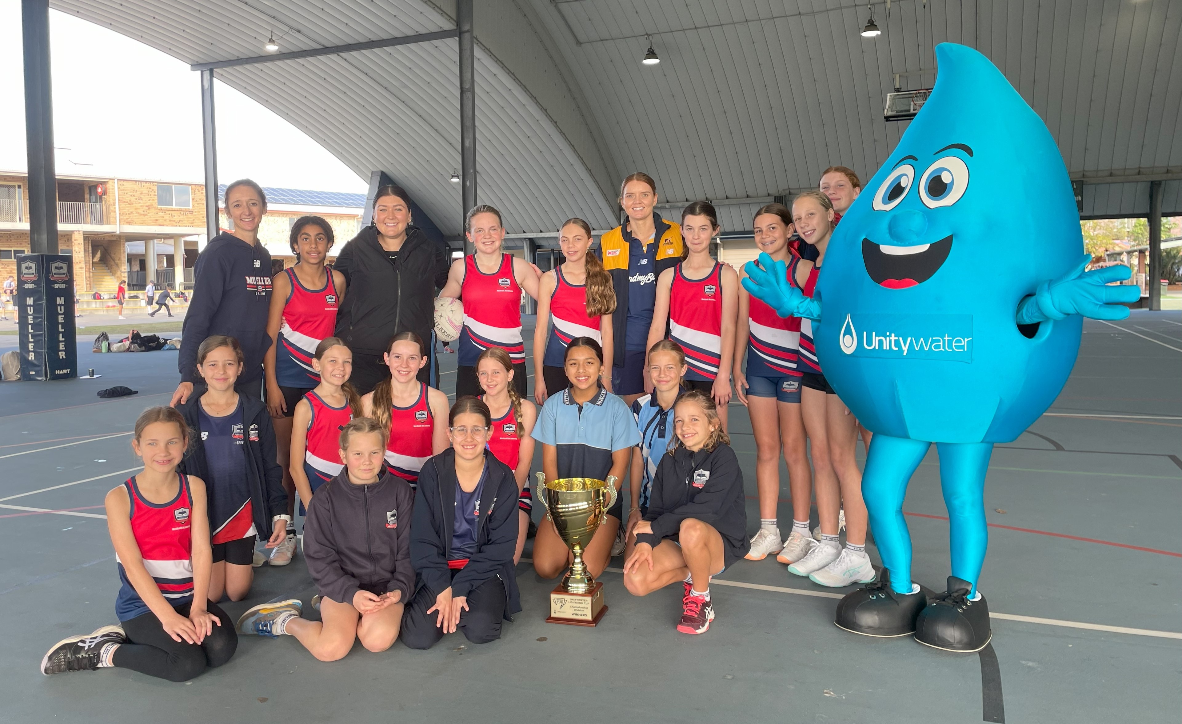 Media ReleaseToday, year five and six students from Mueller College sharpened their competitive edge ahead of this Friday’s highly anticipated Unitywater Lightning Cup tournament, through an exclusive netball training session with Sunshine Coast Lightning Captain Steph Fretwell.